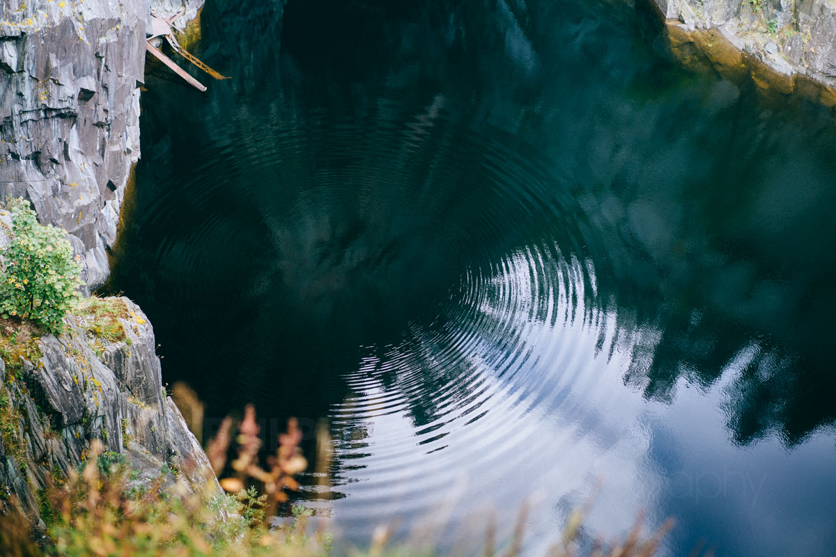 The remains of his apple making ripples….