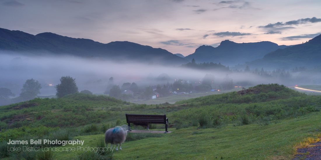 Following on from my previous post from Langdale as I headed home I could see the mist rolling into the Langdale valley and as I approached Elterwater I decided to stop and watch for a while. Sat in the boot of my car I made this image of the Herdwicks heading for bed.