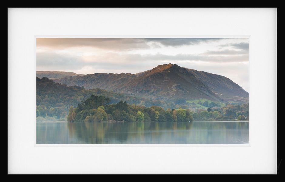 A close up of the Island on Grasmere with Allan Bank and Helm Crag behind. The light on the distant fells looks great.