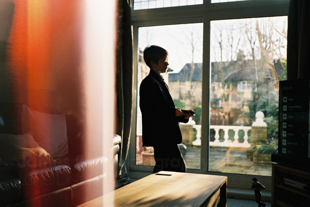 Thomas illuminated by nice low Spring light in our living room